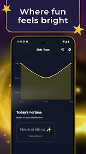 Sloticity es una aplicación de estilo de vida que recrea la atmósfera de un elegante casino nocturno en la palma de tu mano. Con su estética oscura y toques dorados, el ambiente evoca la sensación de haber entrado en un club exclusivo. Esta aplicación se centra en tus emociones y en cómo cada momento puede convertirse en una experiencia significativa, no solo en términos de apuestas, sino en la celebración de tus pequeñas victorias diarias.